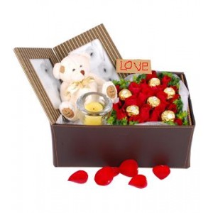 花语:经历了风霜雪雨,我们终于可以长相厮守,你是我今生至亲至爱的人,让时间见证我们的幸福吧!材料:精品卡罗拉红玫瑰19枝,叶上黄金外围环绕,莎啦啦特制小熊1只,(小熊样式仅供参考),莎啦啦精品皮制相框,精品费列罗巧克力6颗,精美烛台1个。包装:双料折叠盒子(精品皮料、小格子藤料)。附送:免费附送精美贺卡,代写您的祝福。(您下单时可填写留言栏)配送:全国配送,送货上门 至亲至爱